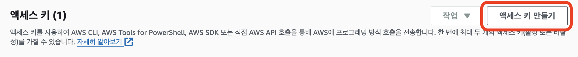 aws 콘솔에 로그인 한 후 엑세스키를 만들 수 있다.