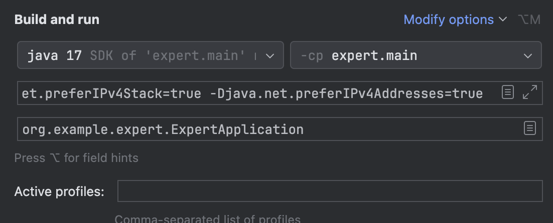 - Djava.net.preferIpv4Addresses = true : InetAddress.getByName() 같은 메서드를 사용할 때 기본적으로 IPv4 주소를 먼저 반환하도록 한다.