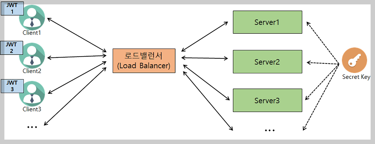 무상태(stateless): 서버가 인증 상태를 유지하지 않음. 모든 인증 정보는 토큰에 포함되어 클라이언트에 저장됨. |