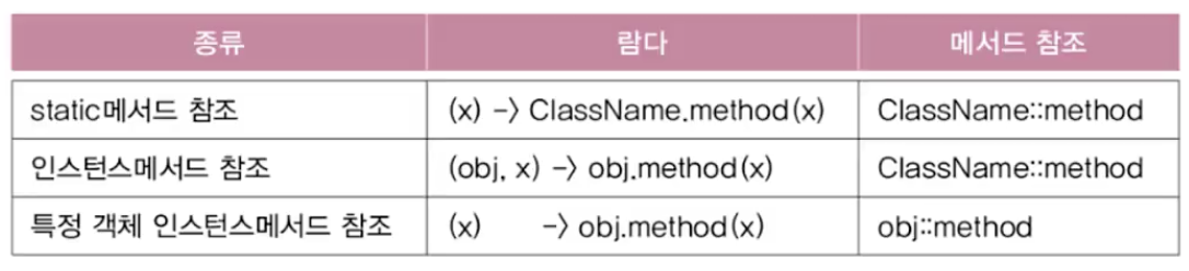 이 중에서 특정 객체 인스턴스 메서드 참조는 거의 사용하지 않는다.