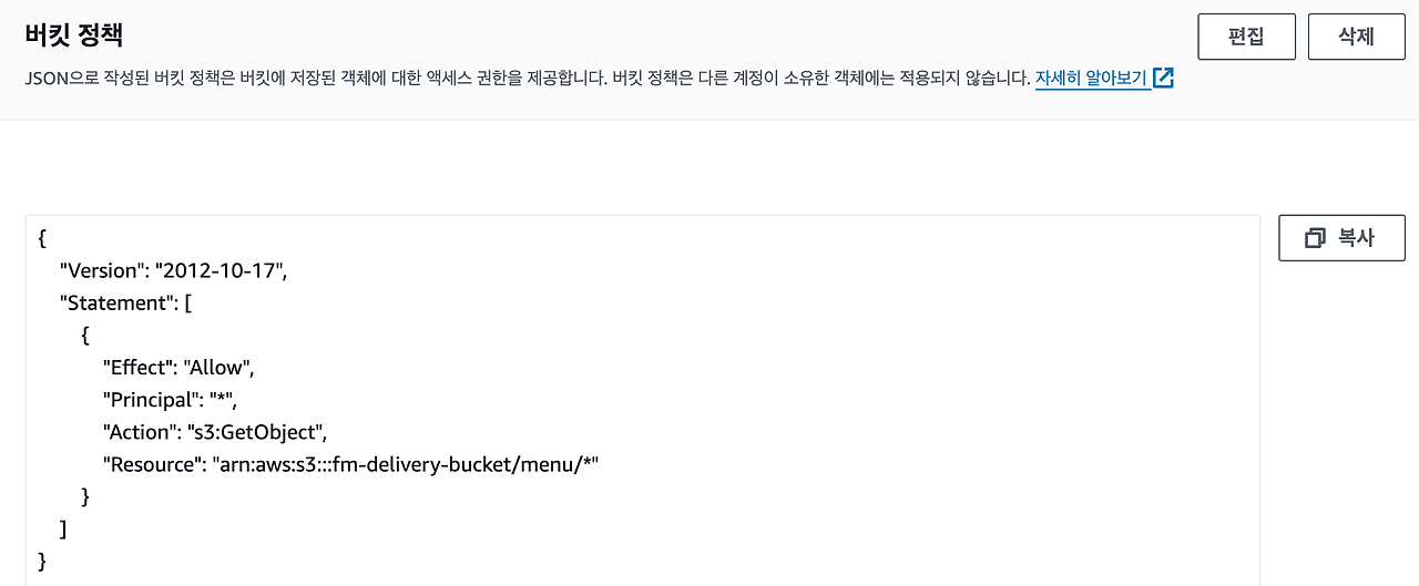 aws 콘솔 접속 > s3 > 권한 탭에 들어간다.