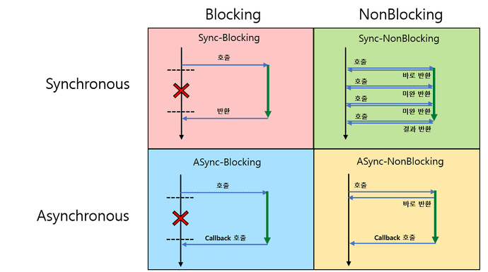 | 동작 방식 | 동기(Synchronous) | 비동기(Asynchronous) 및 논블로킹 |